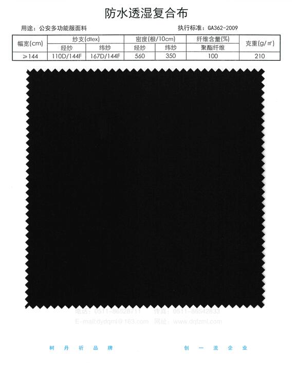 基布规格:涤纶半消光低弹丝(110dtex/144f×167dtex/144f);